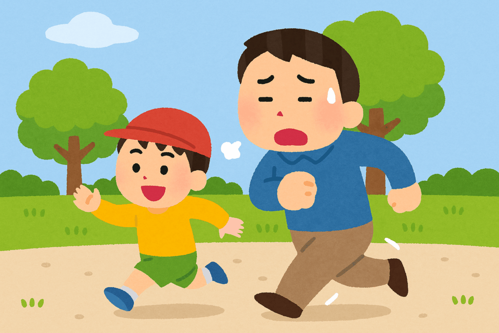 保育園に通う子どもが1人いて、週末は公園で鬼ごっこをしています。